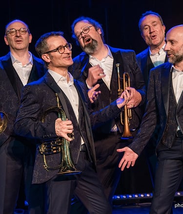 Pour leur concert « Carte Blanche », les Trompettes de Lyon puisent dans leur vaste répertoire : des grands classiques de l'orchestre à des extraits d'opéras célèbres, de la chanson française aux fantaisies modernes et comédies musicales, les musiciens auront à cœur de faire sonner avec brio leur instrumentation si particulière. On voyage en leur compagnie en redécouvrant au gré de leur fantaisie le « grand » comme le « petit » répertoires, dans des arrangements souvent inédits, forcément surprenants.