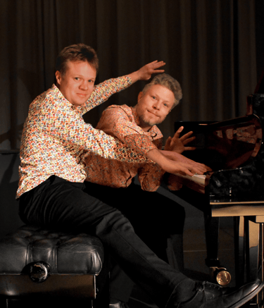 Doté d'une personnalité artistique forte, motivé par une recherche constante de cohésion et de précision, ce duo de pianistes sur 1 et 2 pianos, (mais n'est-ce pas plutôt une seule personne à 20 doigts ?) sort de l'ordinaire et du déjà vu...